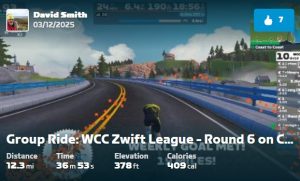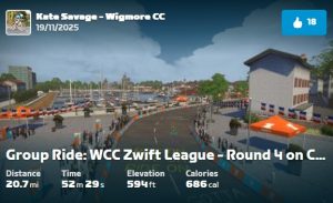 | 1st | Dave Wastall | 4T+ Cyclopark | 00:23:40.10 | Zwift TT | 0 | DTSwiss Disc | 100 |